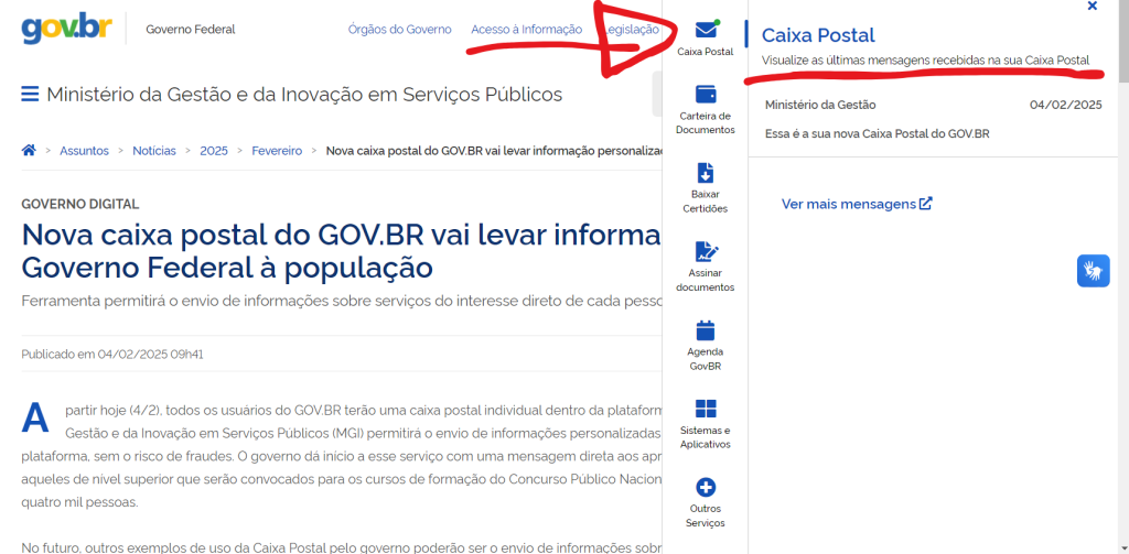 O GOV.BR acaba de lançar uma inovação que promete revolucionar a comunicação entre o Estado e os cidadãos brasileiros. A partir de 4 de fevereiro de 2025, todos os usuários do GOV.BR passaram a contar com uma caixa postal individual dentro da plataforma. Esta nova ferramenta, desenvolvida pelo Ministério da Gestão e da Inovação em Serviços Públicos (MGI), visa proporcionar uma experiência mais personalizada e segura na interação com os serviços públicos.